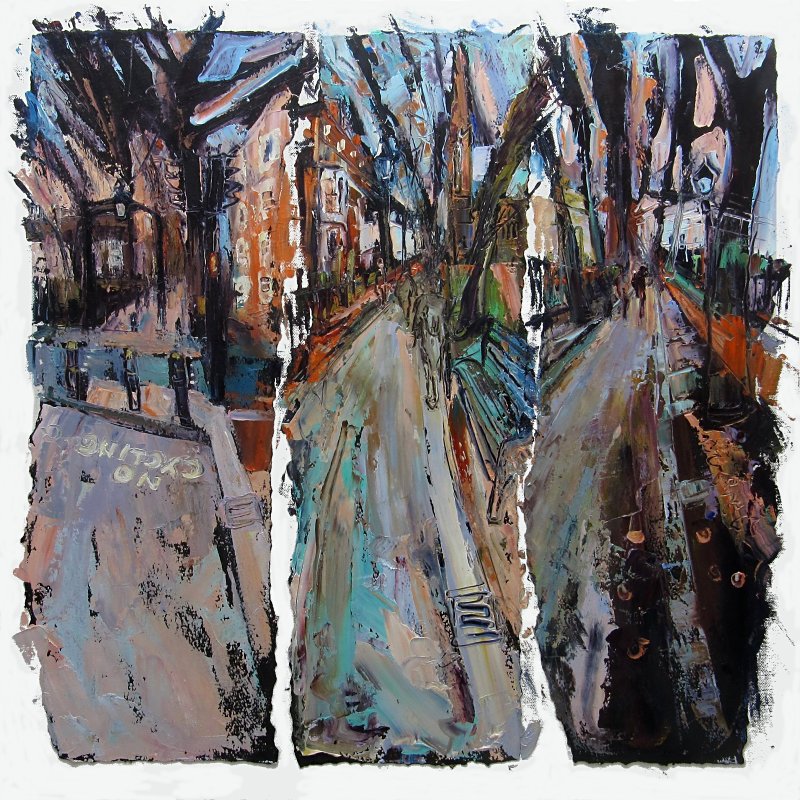 Susan had this piece, “Kitchen Tower and Bridges, Conwy” (oil on canvas, 40x40cm) in the RCA’s annual open exhibition of selected works.