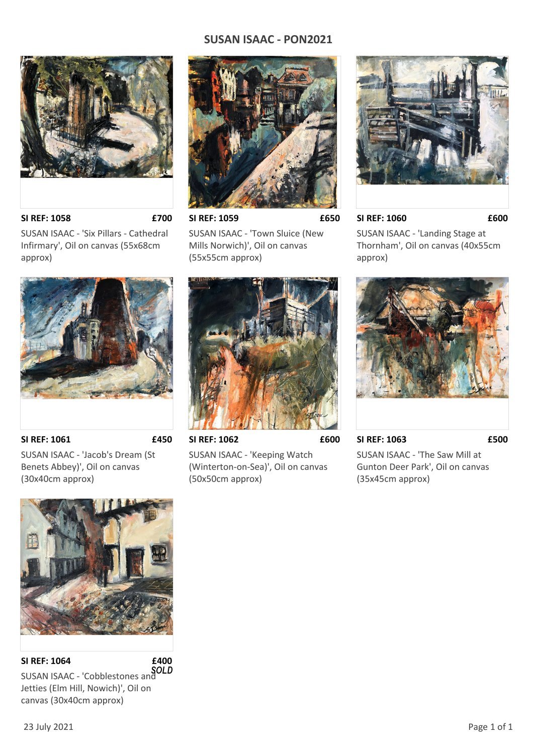 Susan’s painting ‘Below Bishop Bridge’ won 1st Prize (oil painting) in Paint Out Norfolk at the Sainsbury Centre for Visual Arts (plein air competition judged by Prof Paul Greenhalgh, George Rowlett & Dr Francesca Vanke). Other painting locations were at Wells-next-the-Sea, How Hill (Norfolk Broads), Houghton Hall park & the Sainsbury Centre grounds.