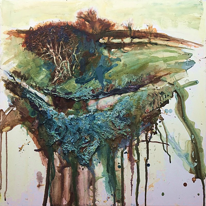 “The very kind invitation from Patchings to hold this solo exhibition presented me with an opportunity to examine how my landscape painting has evolved over the past 15 years. Throughout this time, the placing of elements has been fundamental to my work. I’m seeking a perspective that projects outwards as if to engulf the viewer – I want the viewer to feel tipped into the painting.”
