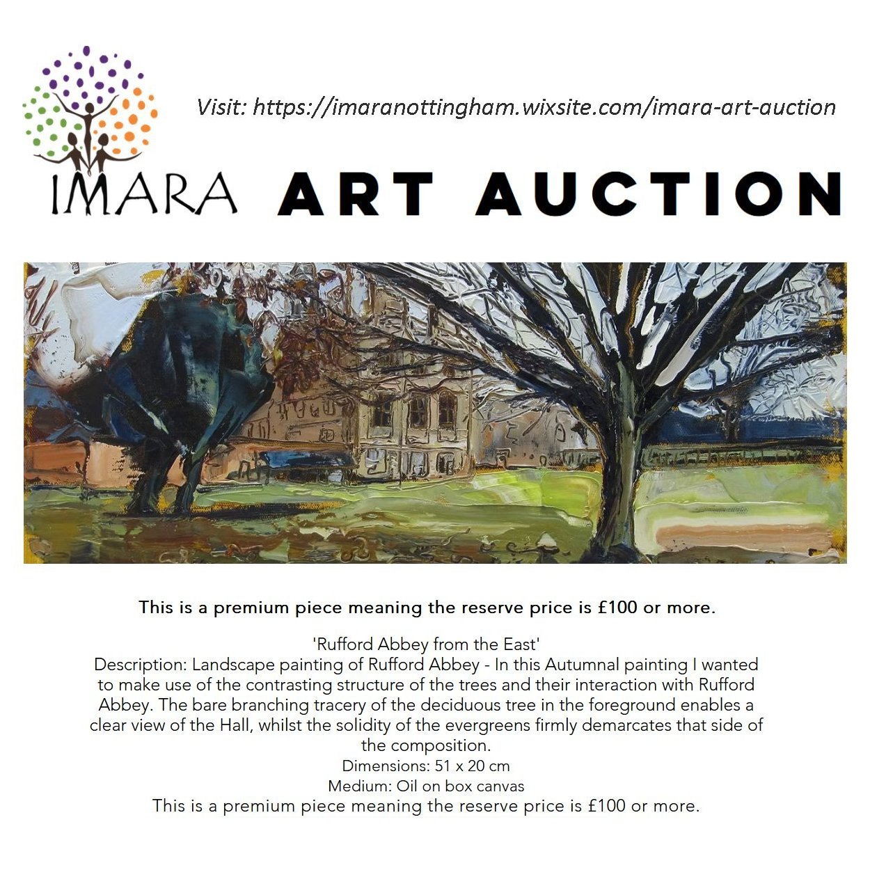 Susan Isaac – “Rufford Abbey from the East” (oil on canvas, 20x51cm)