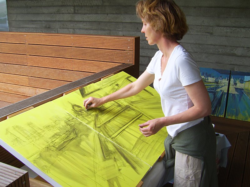 In August 2009 I undertook an unusual commission – to create a painting over the course of a summer evening event at ‘The Deck’ atop the National Theatre in London for the ‘HomeLet’ group. The idea was to create a large ‘en plein air’ work showing a Thames panorama with partying figures in the foreground.