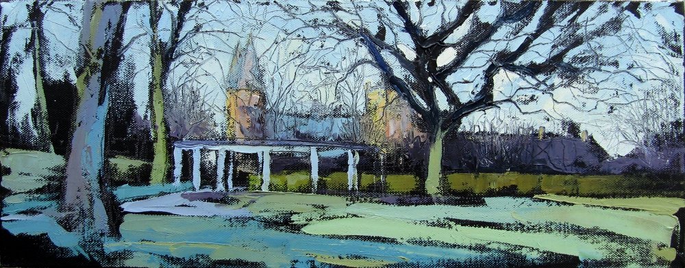 ‘Southwell Minster from the Park in early Spring’ (2010) Oil on canvas, 20x51cm Ref 394 – Sold
