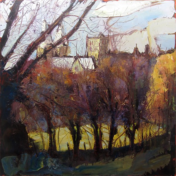‘Southwell Minster from Potwell Dyke’ (2011-17) Oil on canvas, 76x76cm Ref 495 – Sold