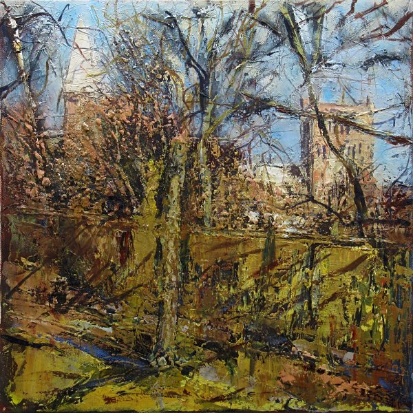 ‘Southwell Minster from the Recreation Ground’ (2013) Oil on canvas, 40x40cm Ref 603 – Sold