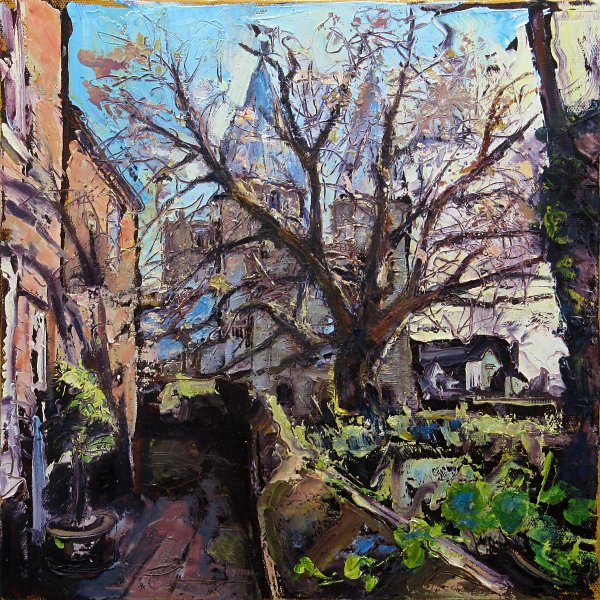 ‘Southwell Minster from Minster House’ (2014) Oil on canvas, 30x30cm Ref 694 – SOLD