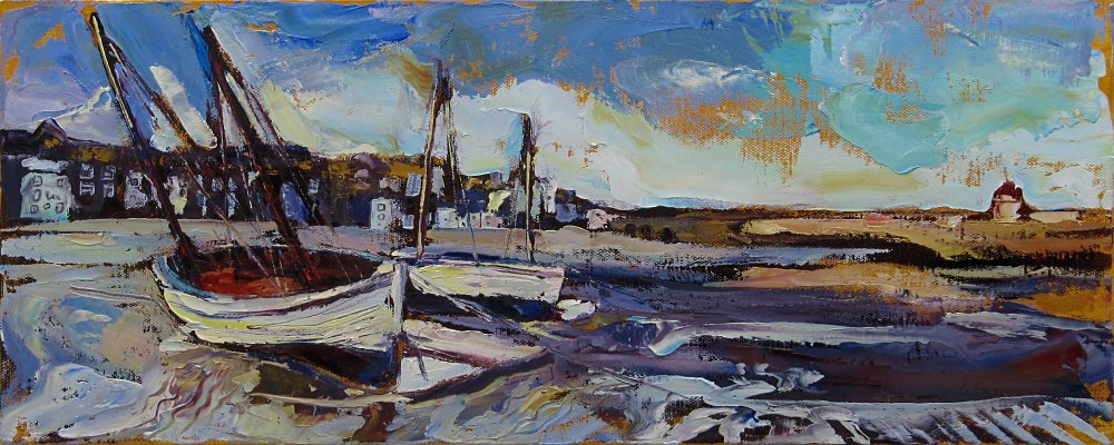 ‘Harbour Beach, St Ives’ (2014) Oil on canvas, 20x51cm Ref 662 – Sold (Claremont Contemporary)