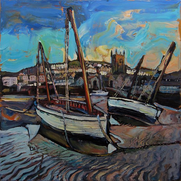 ‘Boats at Low Tide, St Ives’ (2019) Oil on canvas, 61x61cm Ref 717 – £1100 fr or £990 unfr Contact Susan