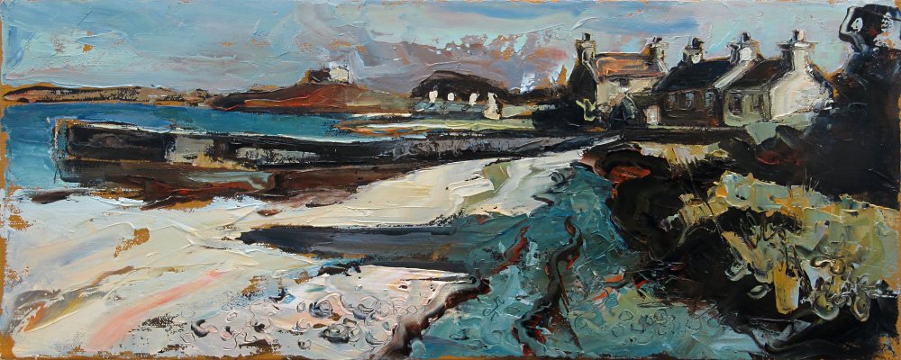 ‘Towards the Blockhouse – Old Grimsby Harbour on Tresco’ (2019) Oil on canvas, 51x20cm Ref 910 – Sold