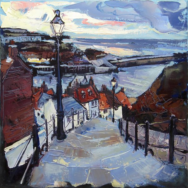 ‘The 199 Steps Whitby’ (2012) Oil on canvas, 51x51cm Ref 549 – SOLD (Staithes Gallery)