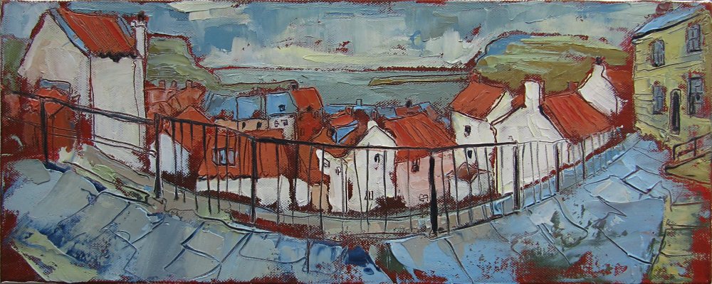 ‘Staithes Rooftops from Mount Pleasant’ (2010) Oil on canvas, 20x51cm Ref 370 – £560/£495 (fr/unfr) Contact: Susan