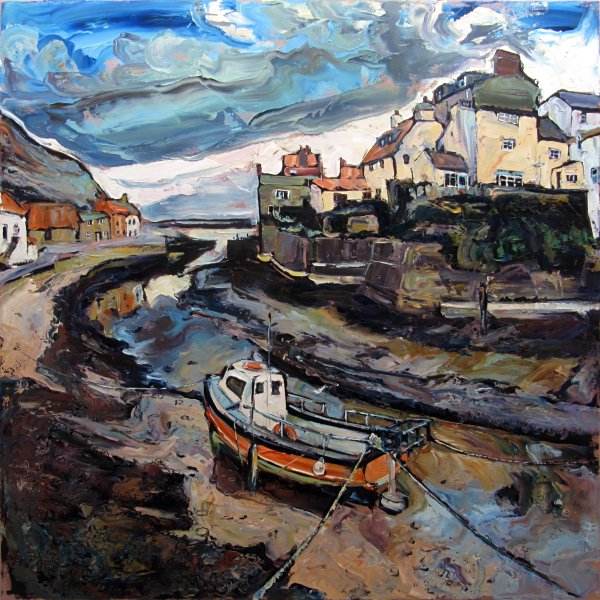‘Staithes from the Beck’ (2017) Oil on canvas, 76x76cm Ref 839 – SOLD (Staithes Gallery)